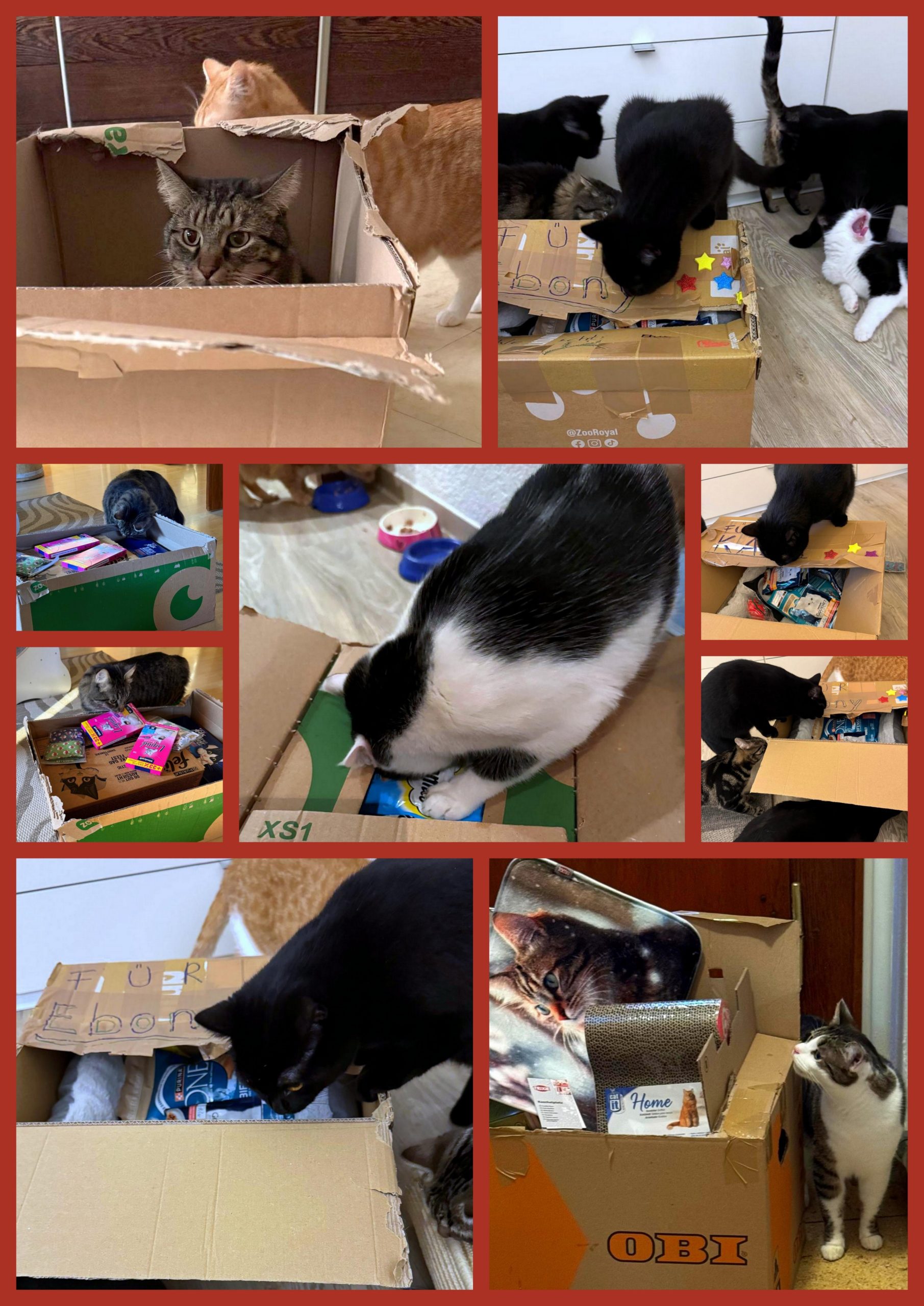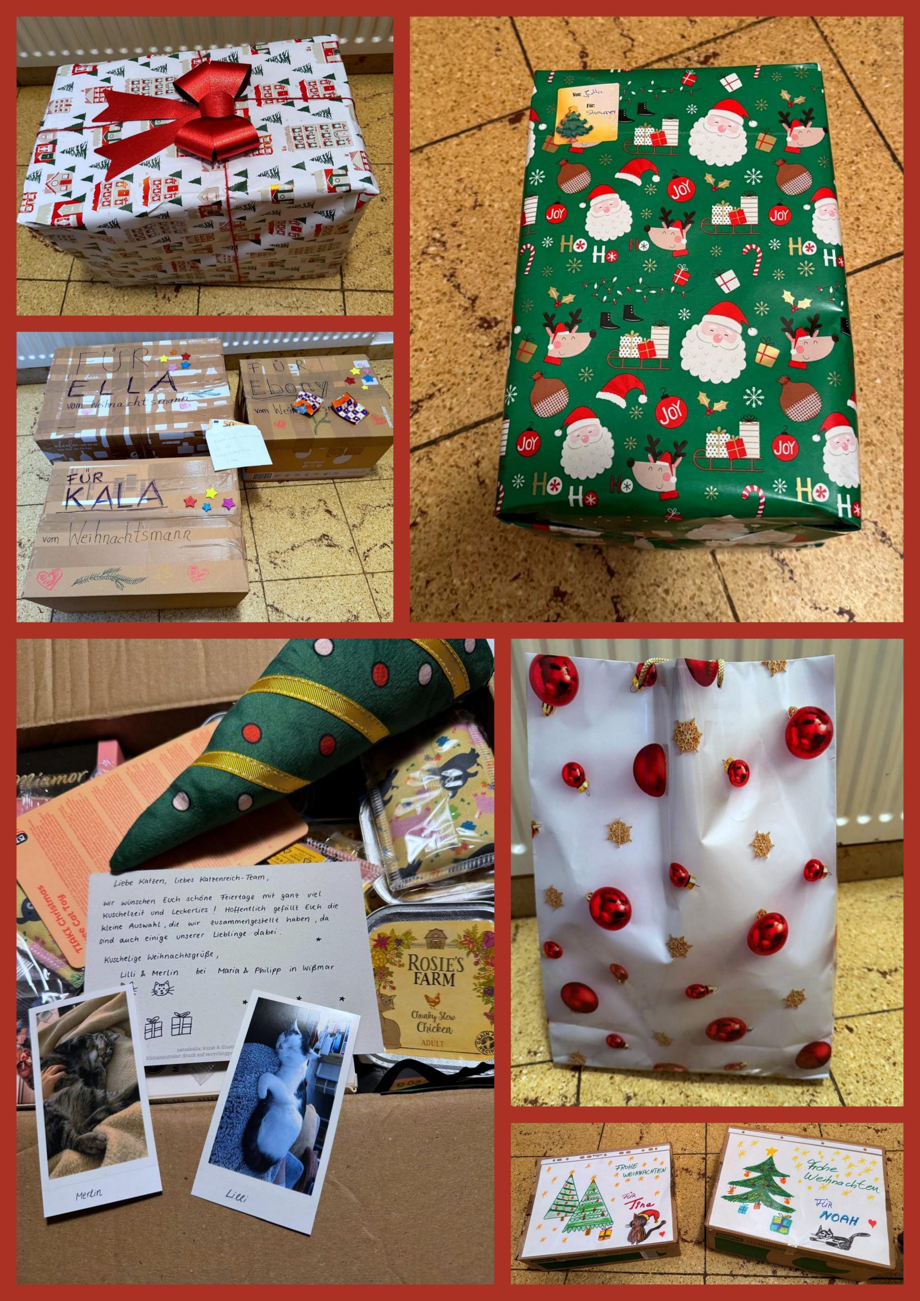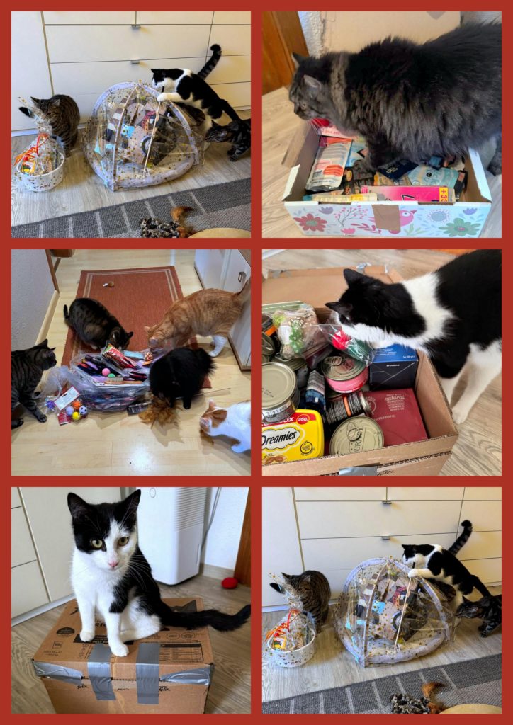Erfolgreiche Weihnachtsspendenaktion. Alle Katzen haben ein Geschenk bekommen und sich sehr gefreut