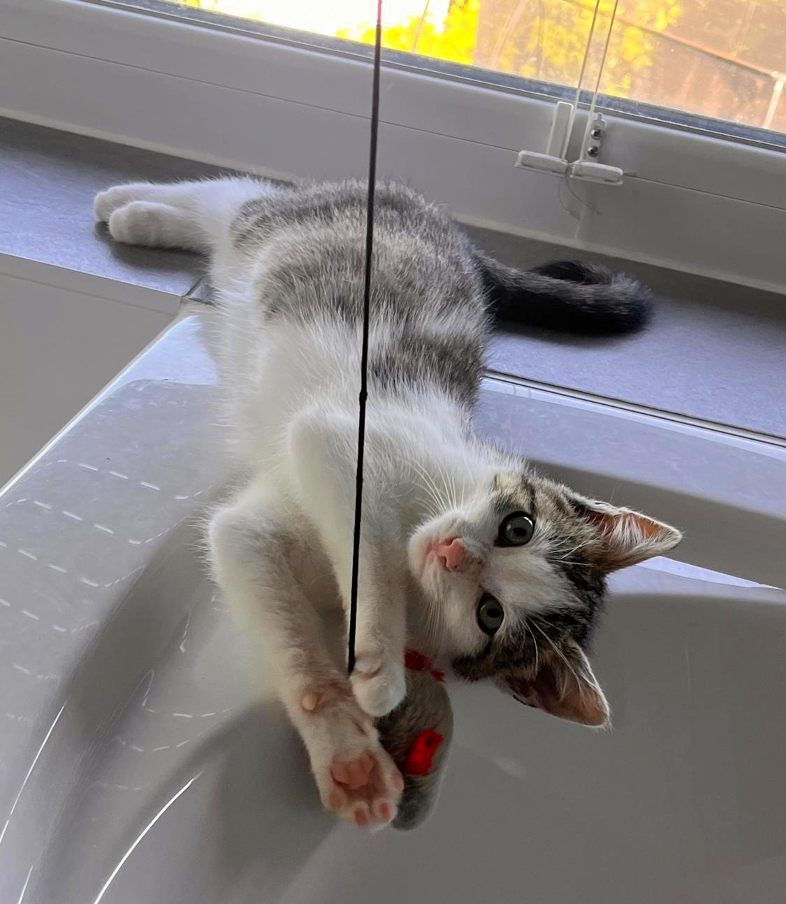 Der kleine Kater lebt aktuell auf einer Pflegestelle in Biebertal. Am Anfang war er scheu und zurückhaltend, hat sich aber inzwischen zu einem richtigen kleinen Schmuser entwickelt. Besonders gerne spielt er mit seinen Menschen und genießt die Aufmerksamkeit. Er sucht ein Zuhause zusammen mit seiner Freundin Holly. Im Idealfall kann er in seinem neuen zu Hause später Freigang genießen. Er ist stubenrein und wird entwurmt, gechippt und geimpft abgegeben. Hugo freut sich auf seine neuen Menschen und darf gerne besucht werden:)