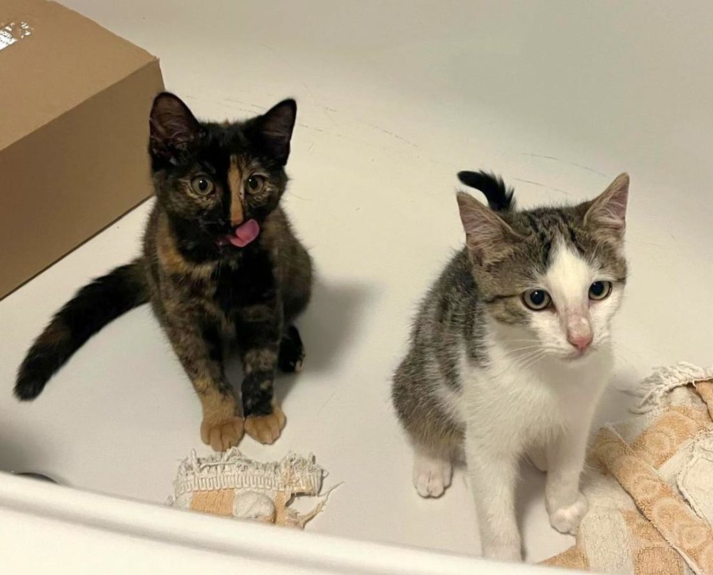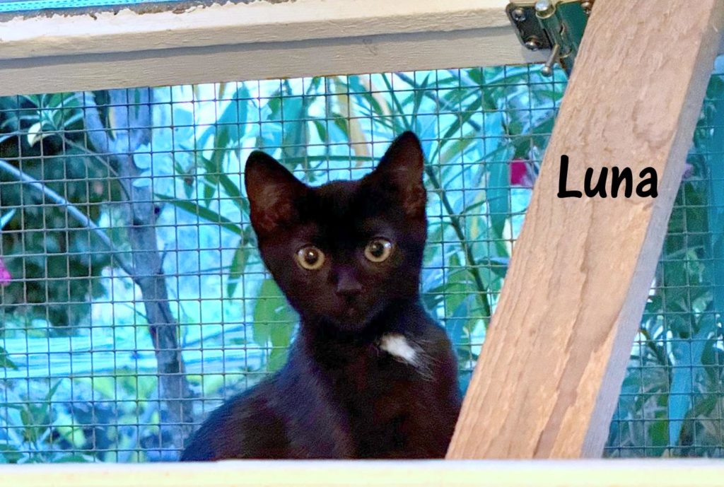 Luna und Dana sind zwei Wildlinge, die zusammen mit ihrer Mutter an einer unserer Futterstellen einfangen wurden. Bis auf diese eine Katze, eine besonders schlaue, die auch nicht immer da ist, konnten an diesem Platz bereits alle Katzen kastriert werden. Doch endlich, nach langen Zitterpartien, wurde sie mit ihrem Nachwuchs gesichert und mittlerweile kastriert zurückgebracht. Die Kitten sind in einer Pflegestelle im Katzenreich untergebracht, werden tiermedizinisch versorgt, gezähmt und zu gegebener Zeit in liebevolle Hände vermittelt. Noch sind es kleine Fauchis, was sich aber bald ändern wird. Die Mutterkatze wird an der Futterstelle mit den anderen Katzen auch weiterhin versorgt.