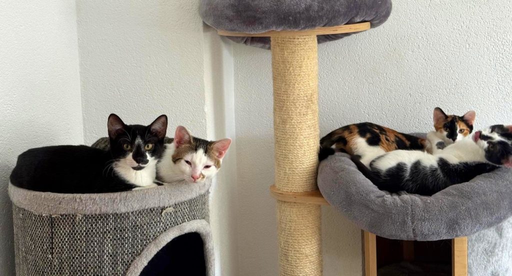 Henry, Noah, Benni und Mila waren die ersten Katzenbabys die in diesem Jahr im Katzenreich eingezogen sind. Sie wurden mit ihrer Mutter in einem Garten entdeckt und mussten eingefangen werden. Es sind kleine Wildlinge, die keinen Menschenkontakt hatten. Nach anfänglichem Fauchen, sind es mittlerweile kleine Schmusekatzen geworden und genießen es mit den Zweibeinern zu spielen und zu kuscheln. Die Mutterkatze konnte inzwischen eingefangen und kastriert werden. Da sie eine verwilderte Katzen ist, wurde sie in ihr angestammtes Revier zurückgebracht und wird in Zukunft auch dort versorgt.
