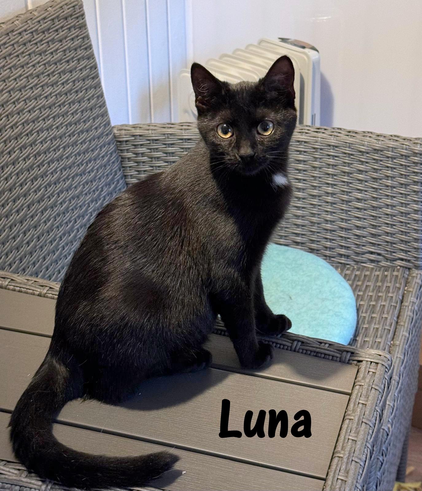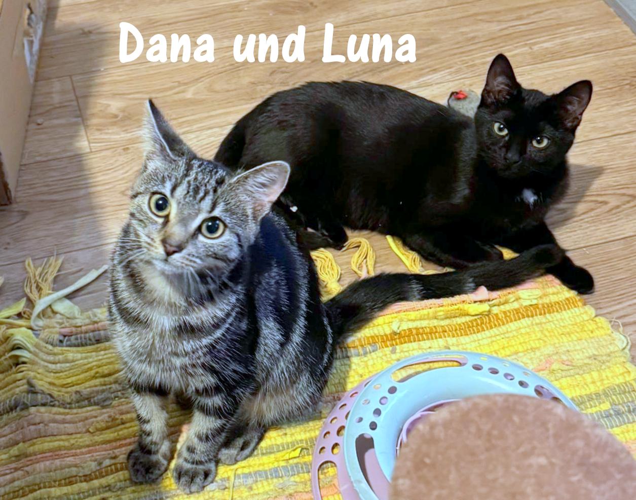 Luna und Dana sind zwei Wildlinge, die zusammen mit ihrer Mutter an einer unserer Futterstellen einfangen wurden. Bis auf diese eine Katze, eine besonders schlaue, die auch nicht immer da ist, konnten an diesem Platz bereits alle Katzen kastriert werden. Doch endlich, nach langen Zitterpartien, wurde sie mit ihrem Nachwuchs gesichert und mittlerweile kastriert zurückgebracht. Die Kitten sind in einer Pflegestelle im Katzenreich untergebracht, werden tiermedizinisch versorgt, gezähmt und zu gegebener Zeit in liebevolle Hände vermittelt. Noch sind es kleine Fauchis, was sich aber bald ändern wird. Die Mutterkatze wird an der Futterstelle mit den anderen Katzen auch weiterhin versorgt.