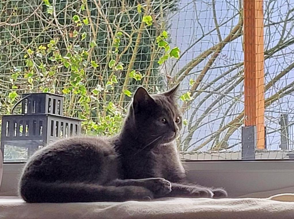 Nala (früher Sina ) im neuen Zuhause bei ihrem ersten Ausflug nach draußen.